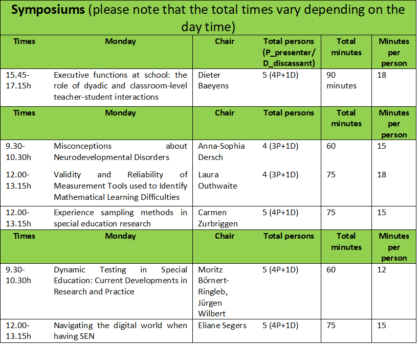 Symposia present research on one topic or theme, providing a coherent set of papers for discussion. Symposium sessions consist of 3-4 oral paper presentations and the discussant’s contribution. For symposia, please submit an overarching abstract of 100-150 words describing the contents and purpose(s) of the symposium. Furthermore, please submit for each paper a short abstract of 60 words + extended summary of max. 600 words. Symposia are directed by a chairperson, who should be one of the presenters. In symposia, participants should come from at least two different countries. Please note that every participant must register individually.